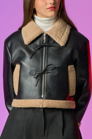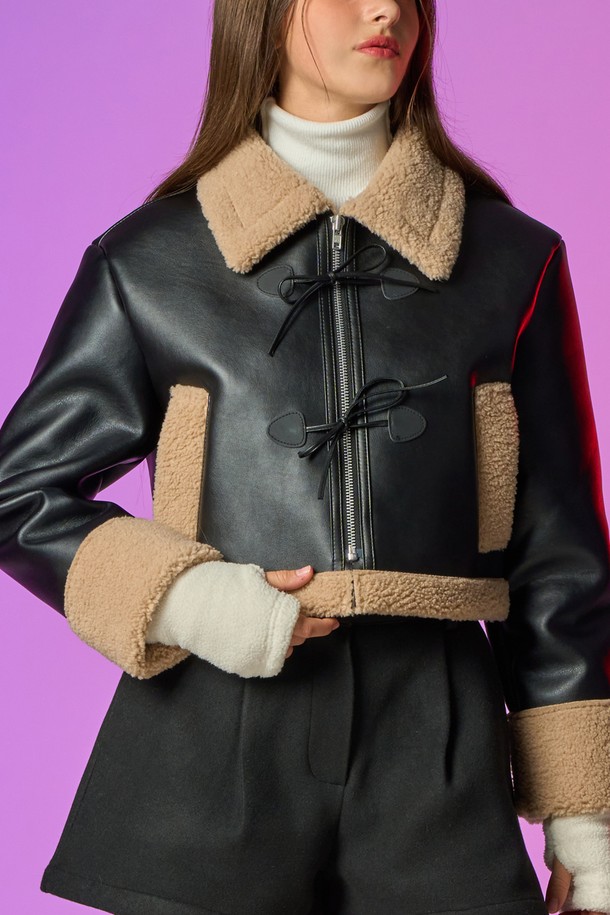 리본 크롭 레더 벨라 무스탕 자켓 [Black_Beige]
