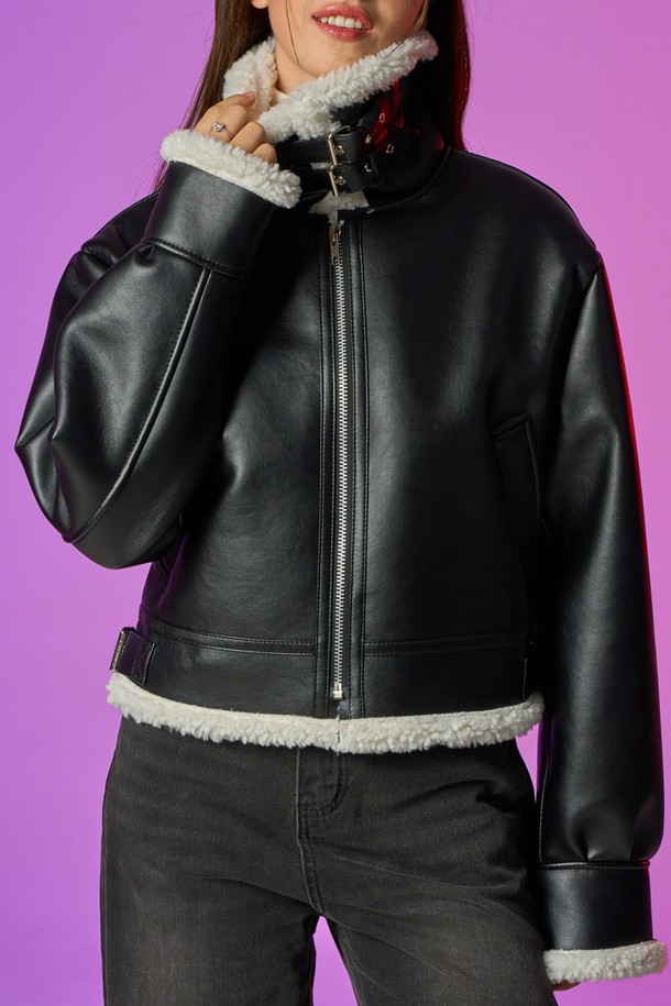 블러드 셔링 양털 플리스 레더 무스탕 자켓 [Black_White]