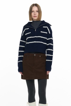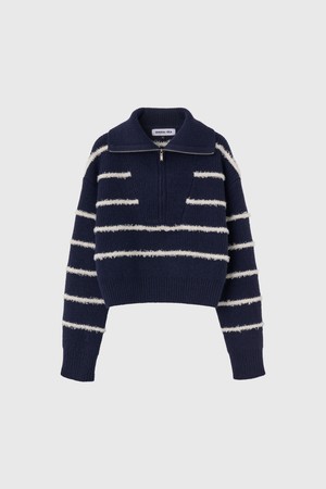 [24FW] WOMAN 스트라이프 하프 집업 하찌 풀오버 [NAVY] / WBD4L05552