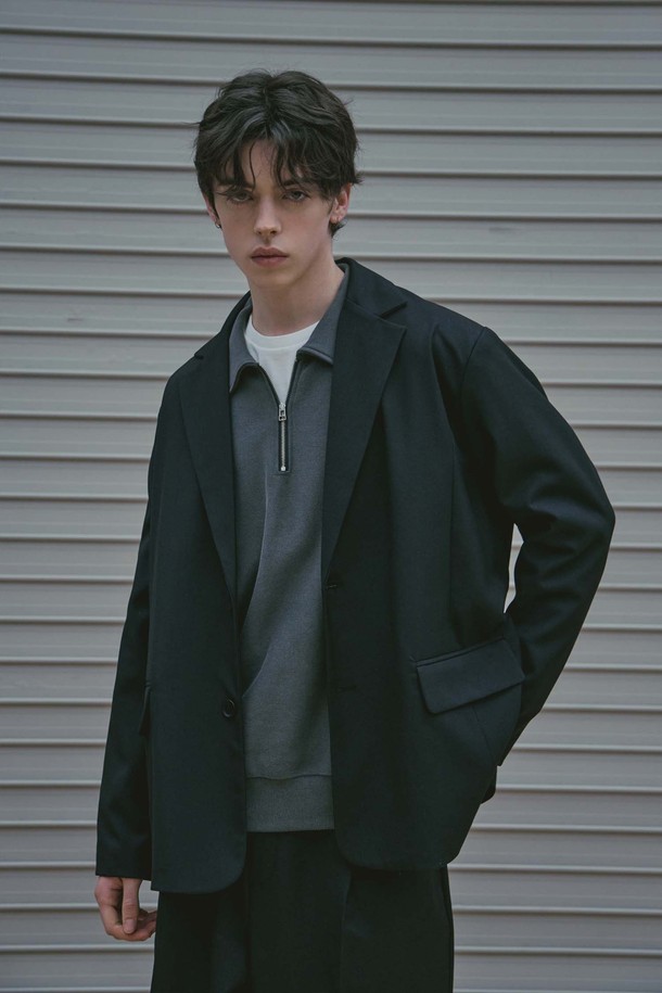 울 블렌디드 오버핏 자켓_블랙