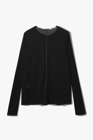 BI-COLOR STITCH ROUND-NECK T-SHIRT BLACK