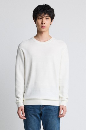 찰떡_가로조직 라운드 니트 아이보리 (베이직핏)