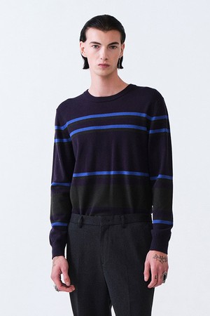 베이직핏 소매 포인트 찰떡 니트 (네이비)