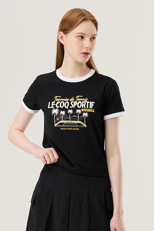 여성 크롭 링거 그래픽 반팔티 블랙(QP322TRS72)