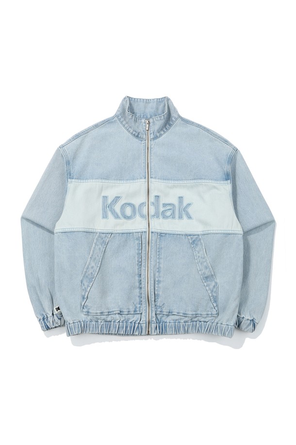 컬러블럭 데님 빅로고 안감 자켓 BLUE