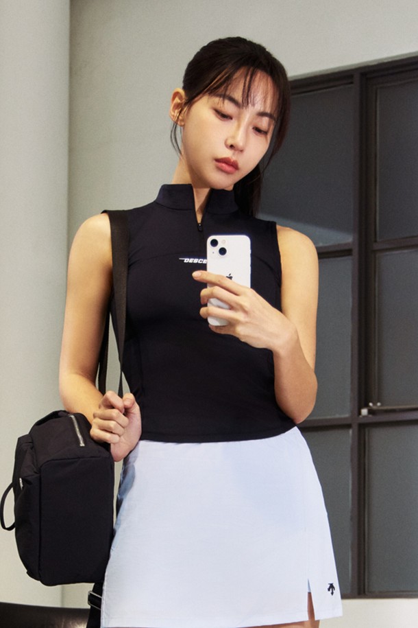 [김민지 착용] 우먼스 트레이닝 벡터 슬림핏 슬리브리스 블랙(SQ122TST11)