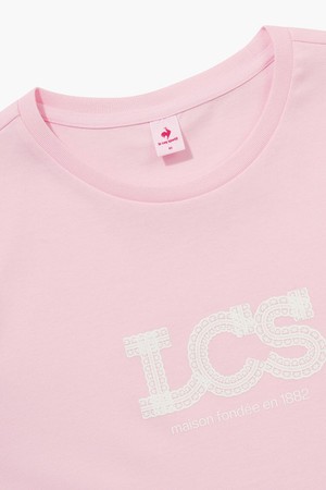 여성 레이스 그래픽 레귤러핏 반팔티셔츠 - 핑크(QQ122ORS21)