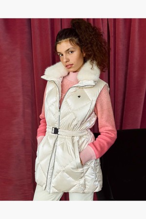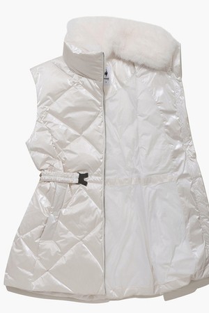 여성 글로시 퀼팅 롱 베스트 풀집업 (GP422LWVO2)