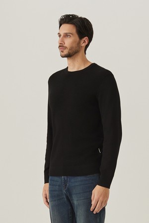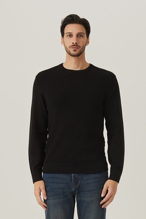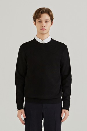 배색 포인트 라운드 스웨터 블랙 (AMSERD10139)