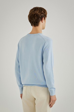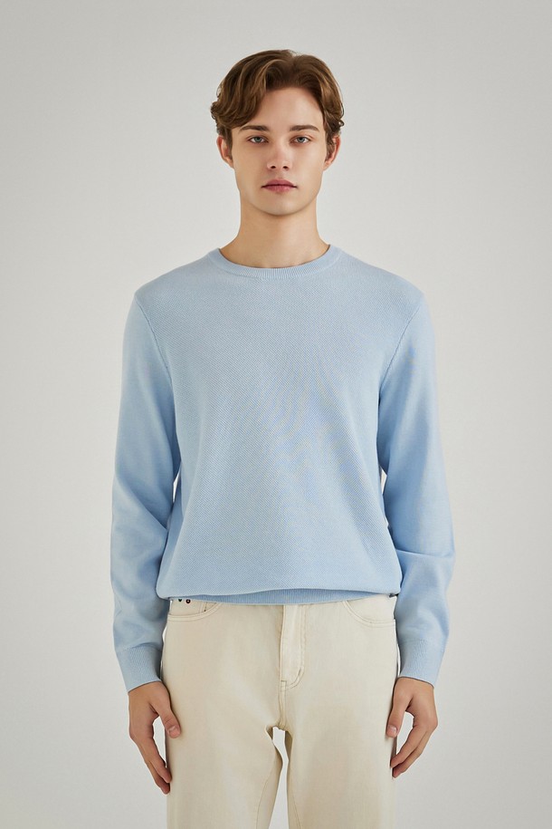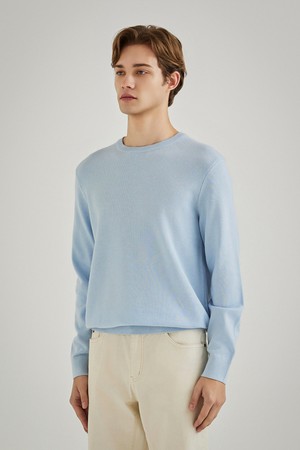 배색 포인트 라운드 스웨터 블루 (AMSERD10141)