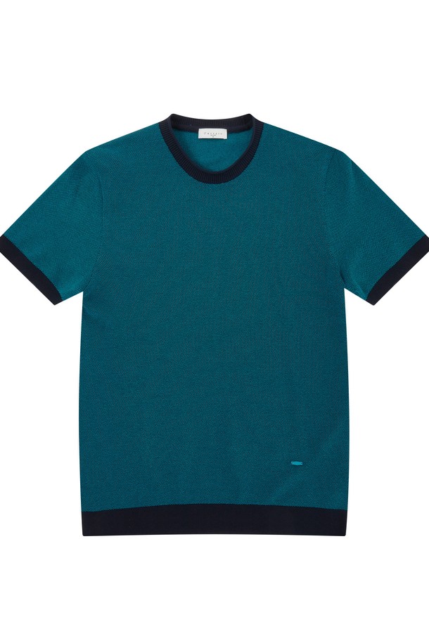 남성 투톤조직 라운드 반팔 스웨터 딥블루 (AM0DRD20147)