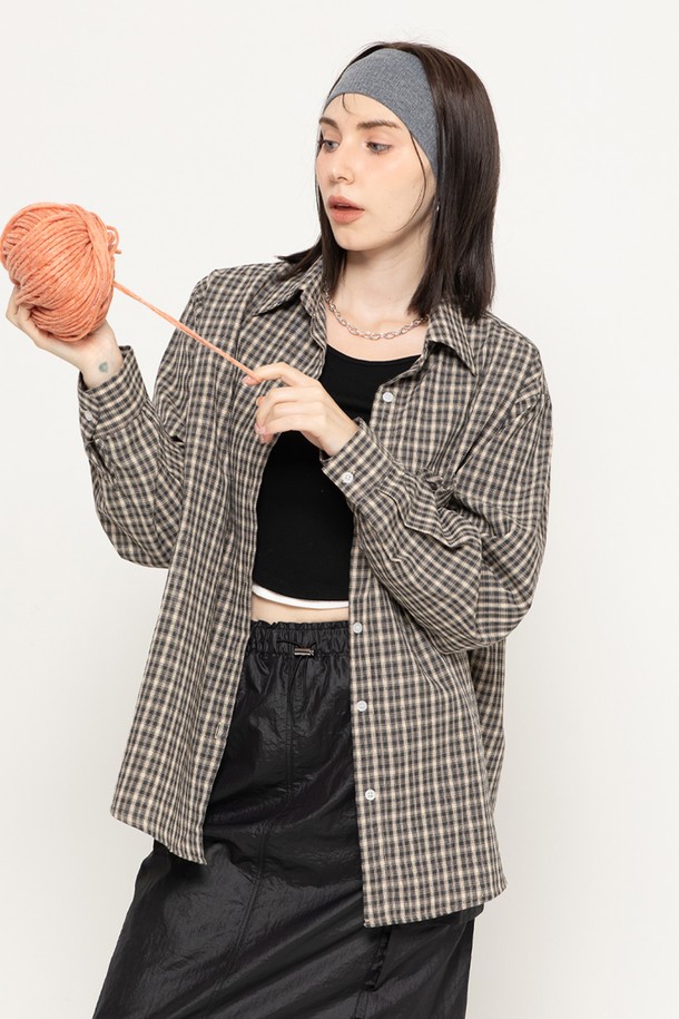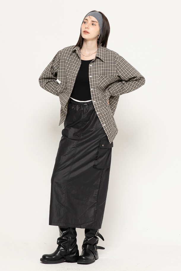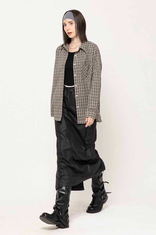 COVER UP CHECK POCKET OVER LONG SHIRT BLACK
