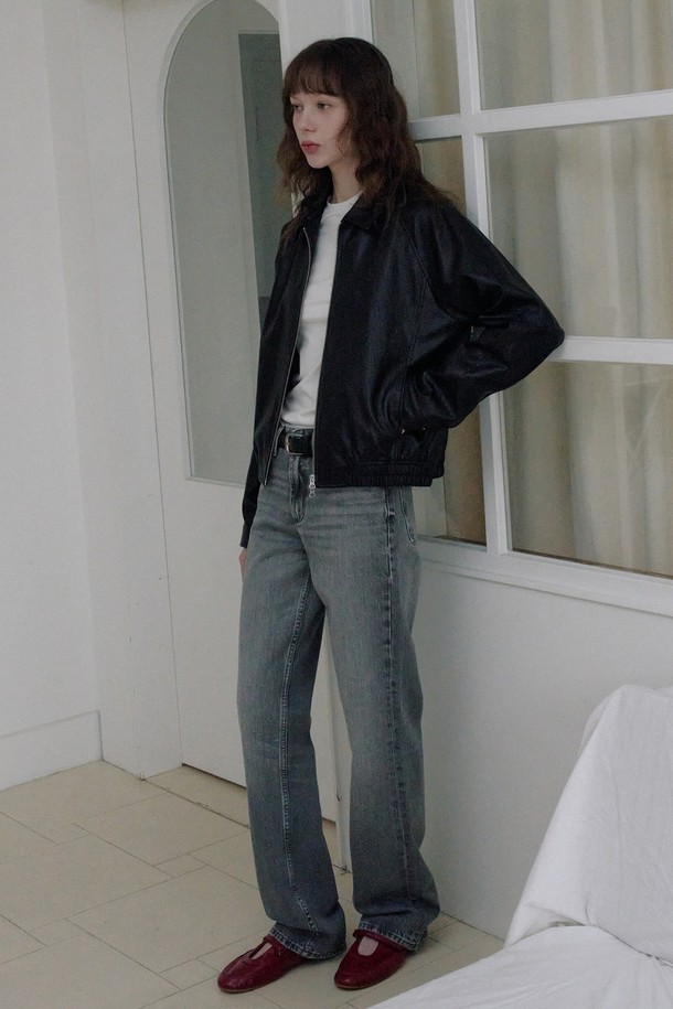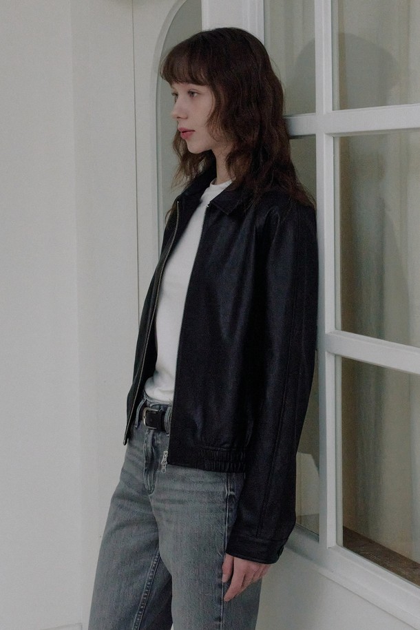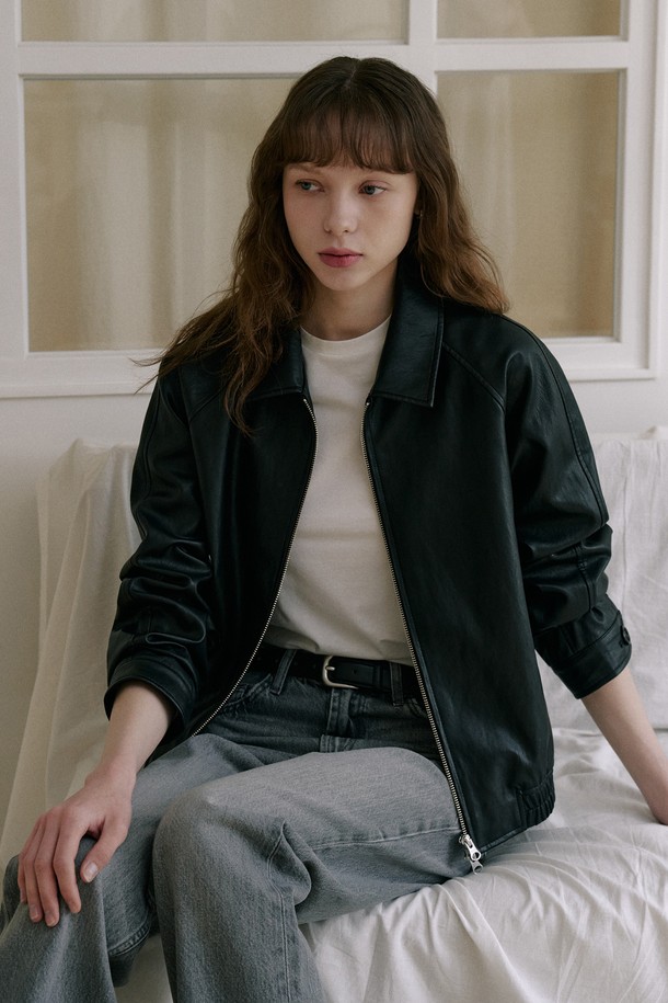 신세틱 레더 크롭 래글런 블루종 [블랙]