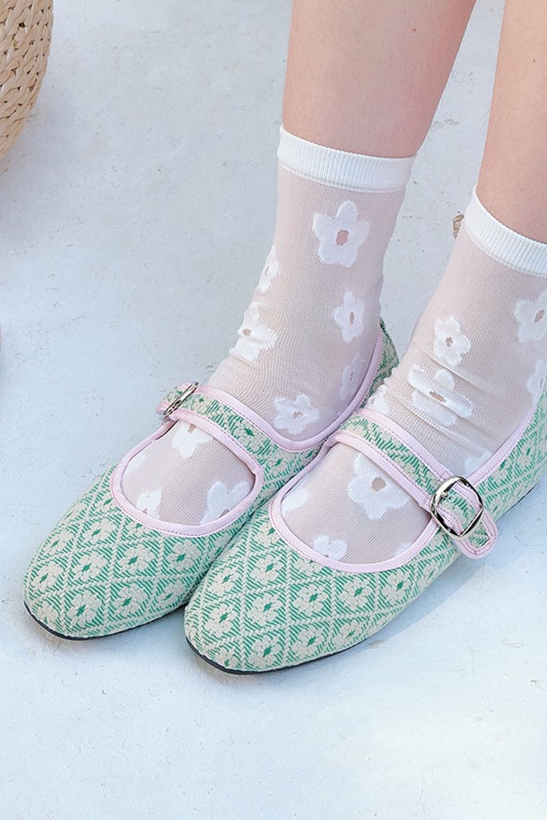 셀린 플라워 패턴 벨크로 플랫_F1115 (GREEN)