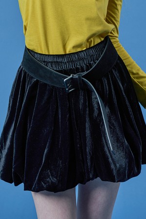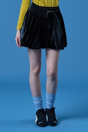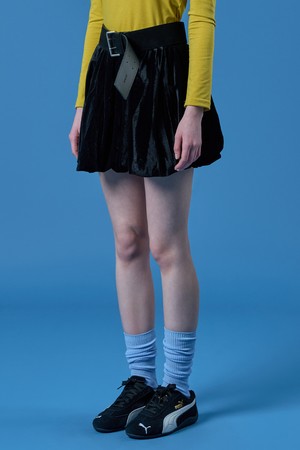 벌룬 벨벳 플레어 밴딩 미니스커트 [BLACK] KCL.