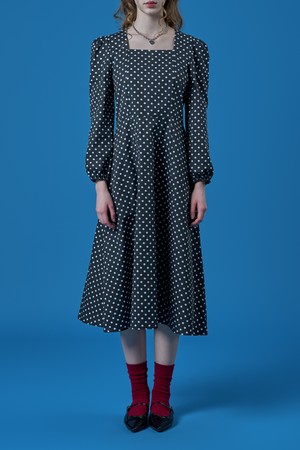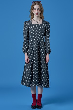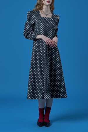 벌룬 퍼프 도트 스퀘어넥 맥시 롱원피스 [BLACK]