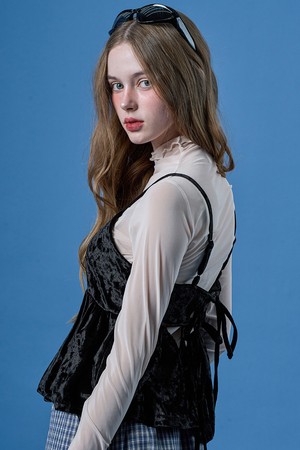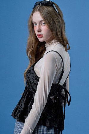 레이어드 벨벳 끈나시 베스트 [BLACK] KCL.