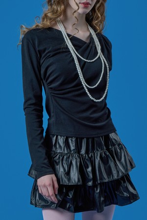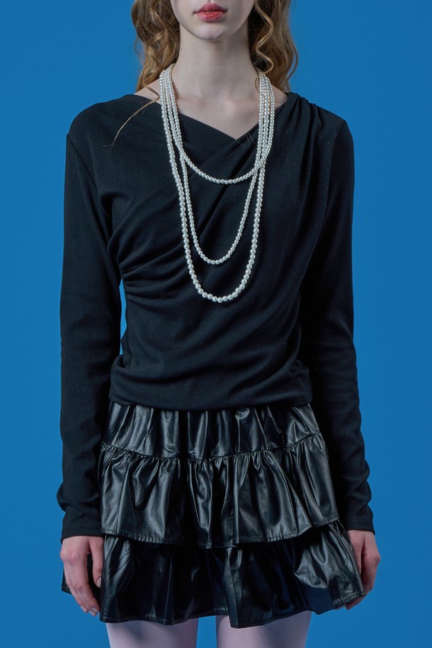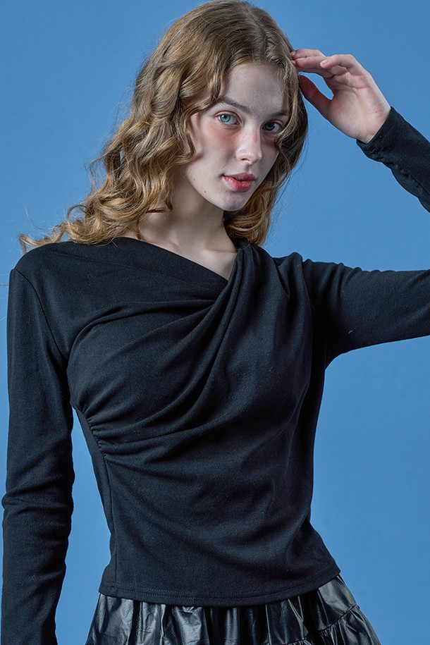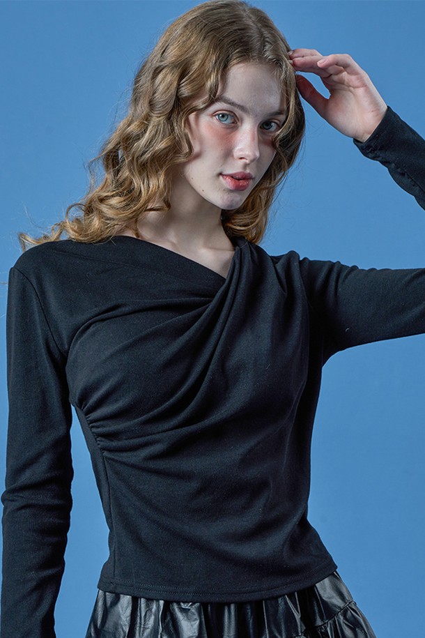 드레이프 브이넥 셔링 플레어 긴팔티 [BLACK] KCL.