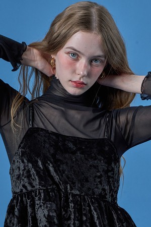 시스루 레이어드 무지 이너 긴팔티 [BLACK] KCL.