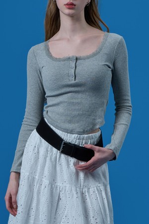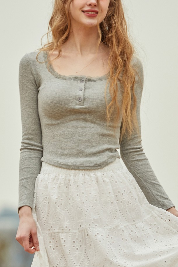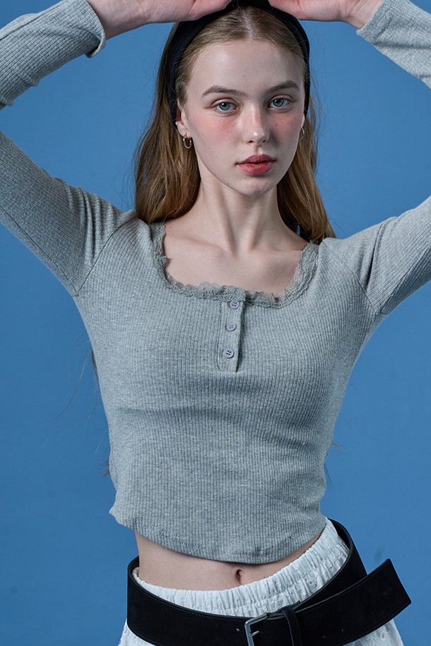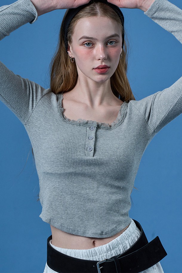 레이스 레이어드 라운드 이너 긴팔티 [GRAY] KCL.