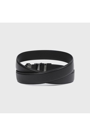 더비엠보 소가죽 흑유광 스퀘어 자동 벨트 블랙