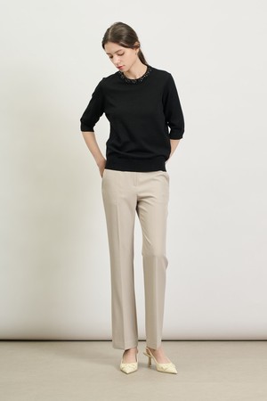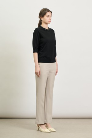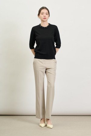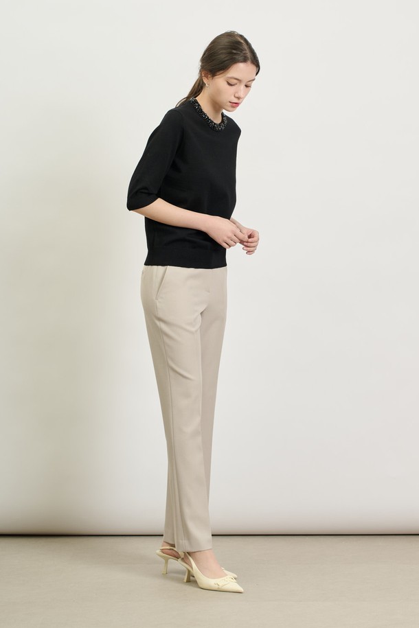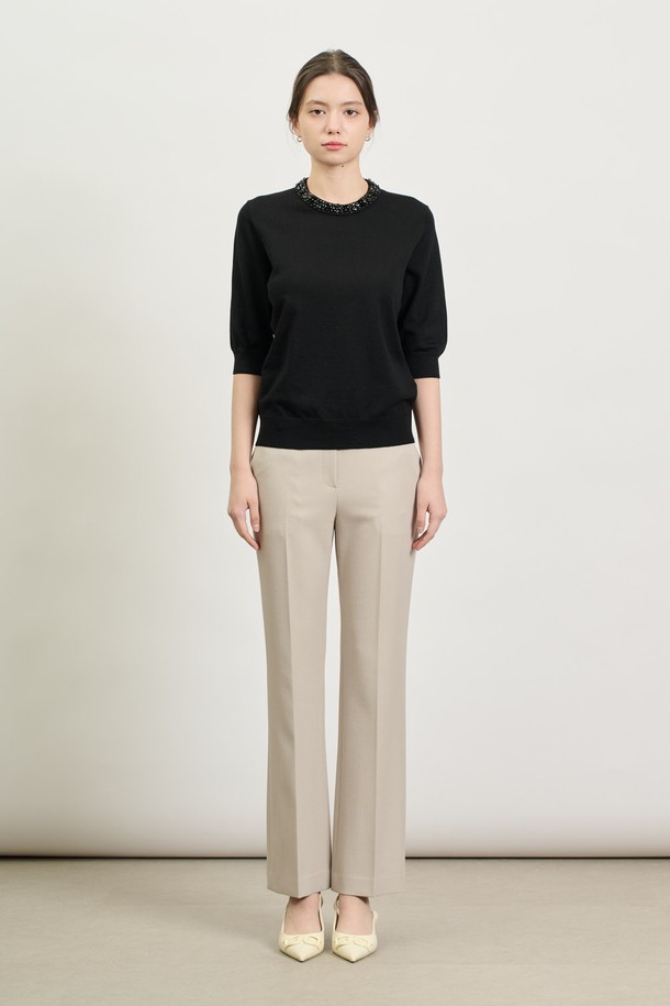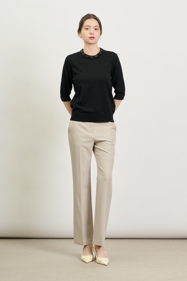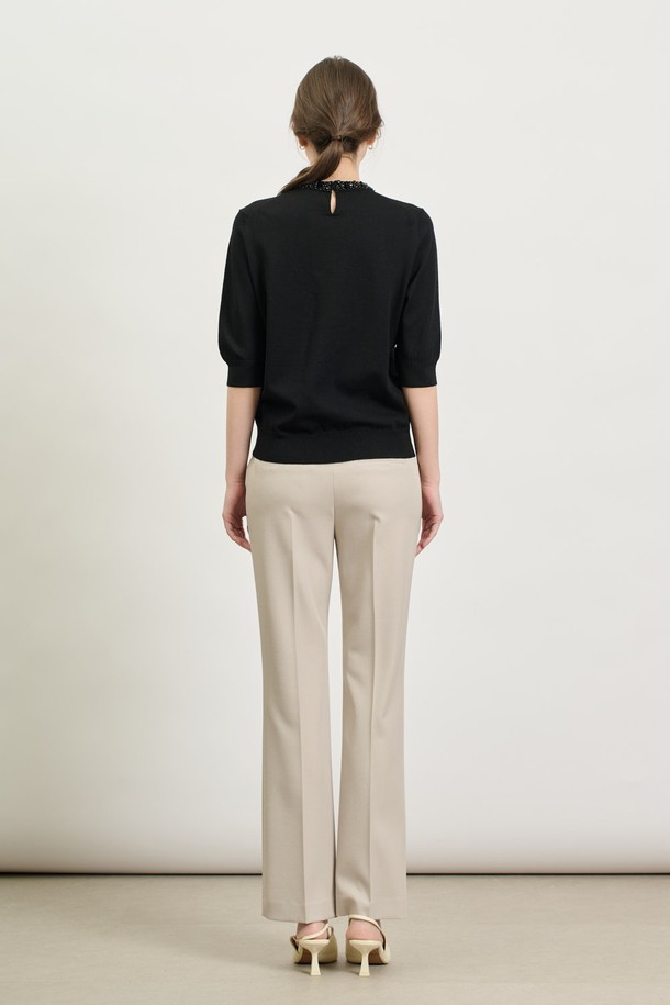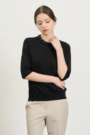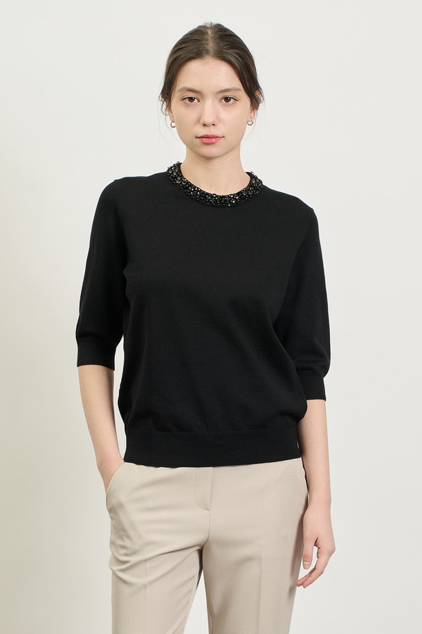 [25SP] 비즈넥 하프소매 니트 - BLACK B5S2K41199