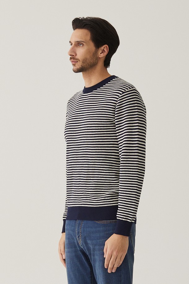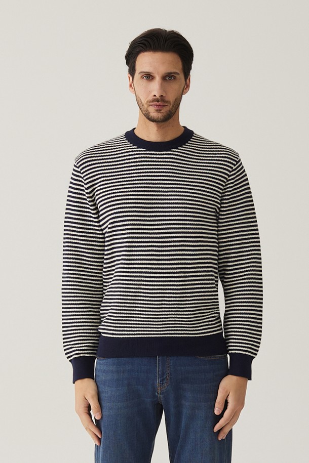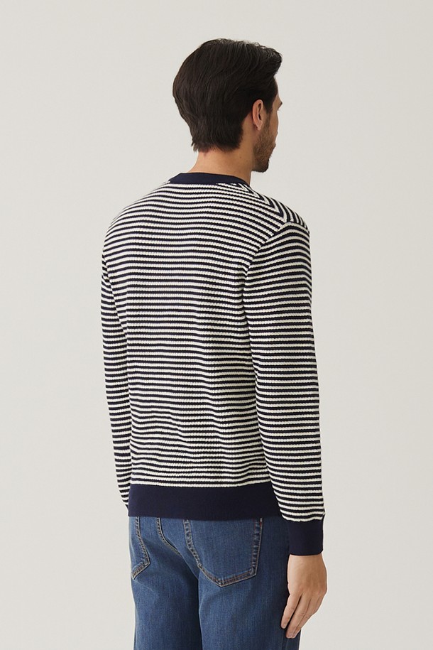 크로쉐 스트라이프 라운드 니트 네이비 (AM0FTSR15149)