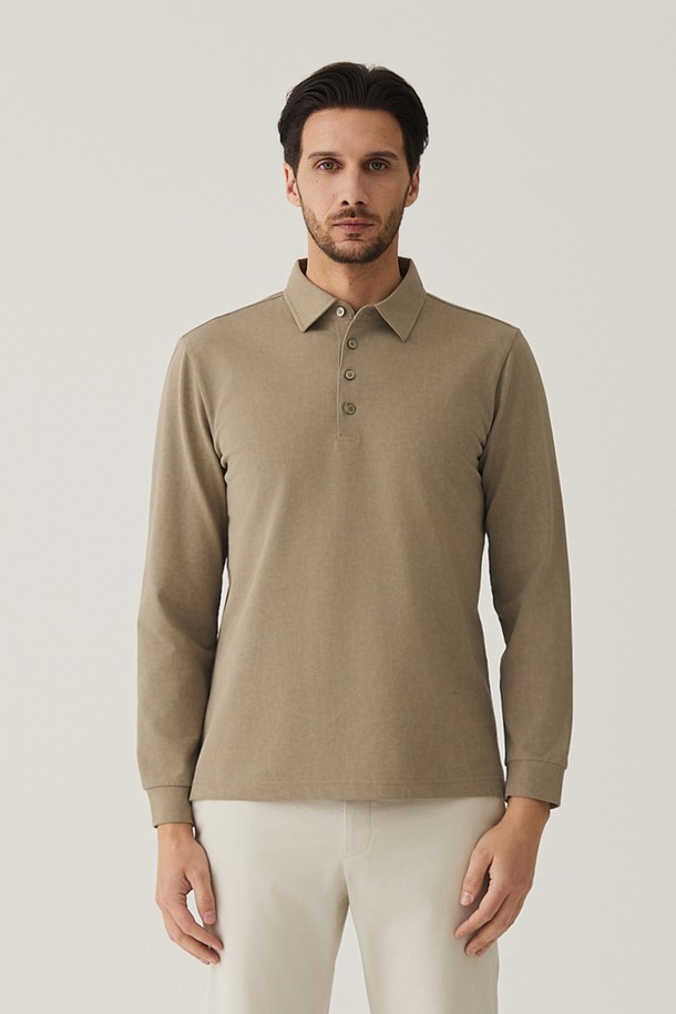 다잉프린트 Y카라 티셔츠 L/카키 (AM0FTTY15125)