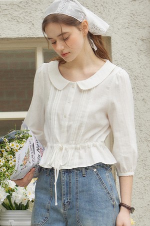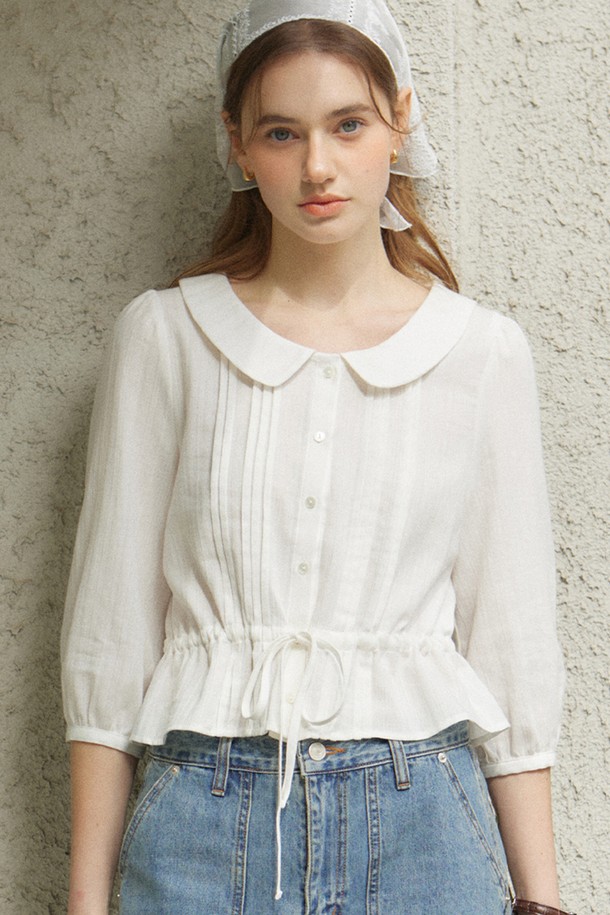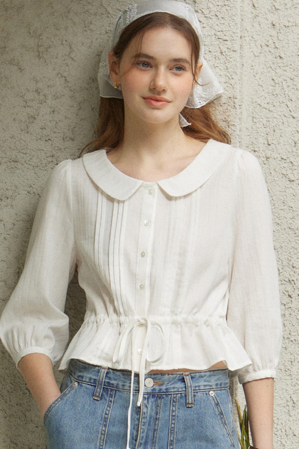 Round Collar Pintuck Blouse - White