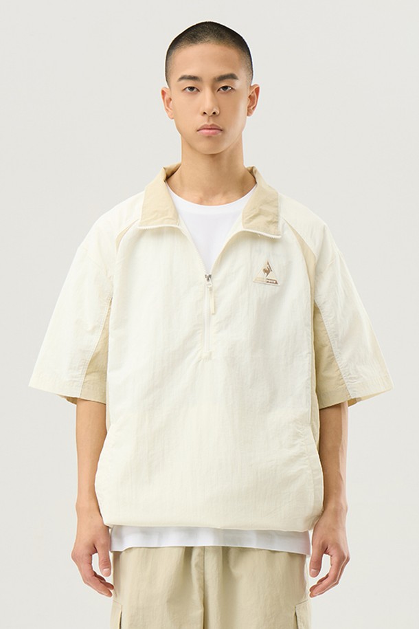 유니 경량 우븐 루즈핏 반팔 아노락 자켓 - 크림(QQ223LJK42)