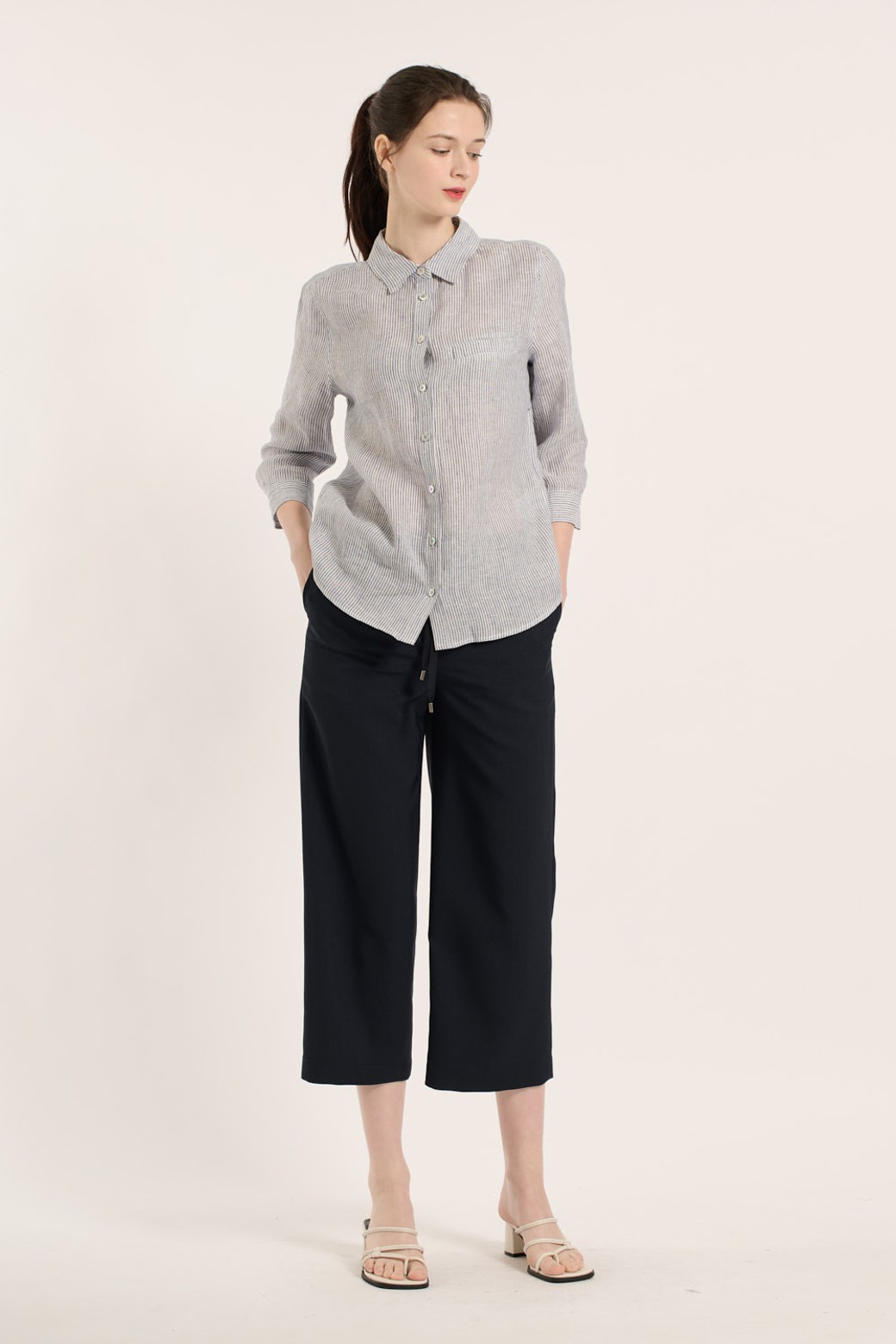 [25SM] 린넨 스트라이프 셔츠 - NAVY B5B3B47455