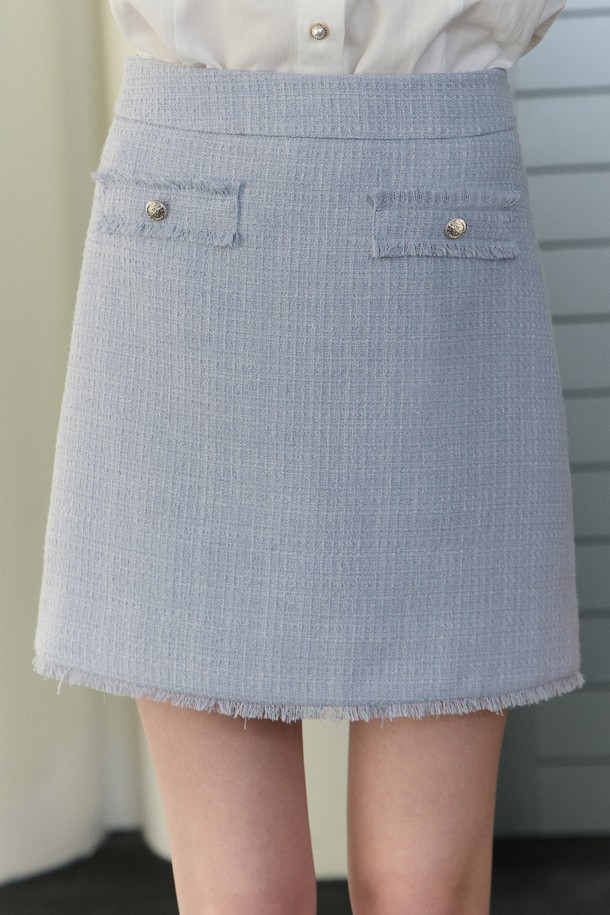 Fringe Tweed Mini Skirt - Blue
