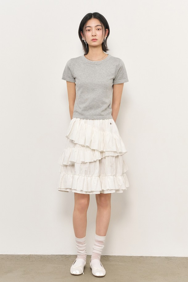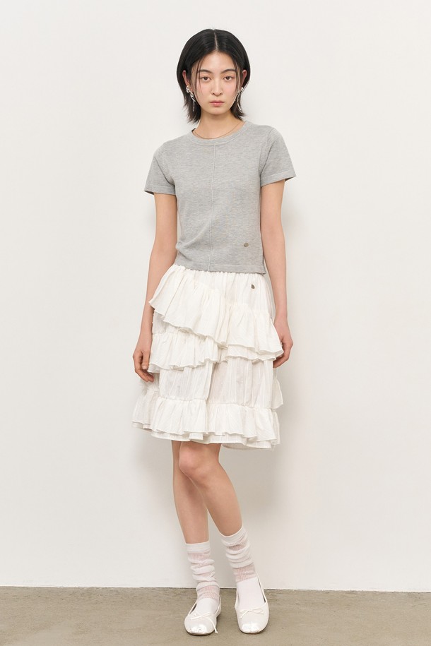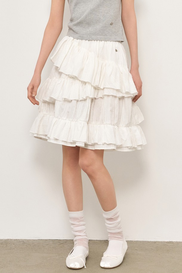 [25SS]WOMAN 언밸런스 코튼 프릴 미디스커트 [WHITE] / WBE2L13513