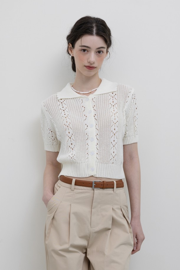 Hollow collar knit top_2color