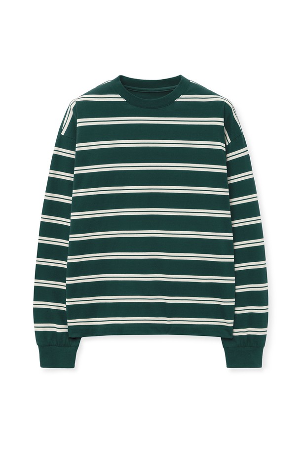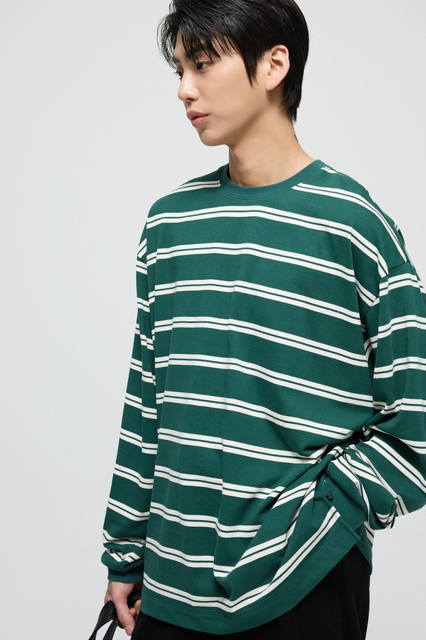 그린 오버핏 스트라이프 롱슬리브 티셔츠 (TNTS4F100E2)
