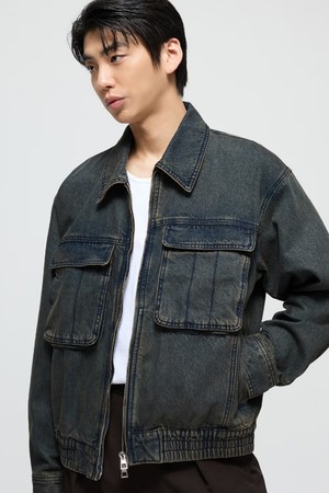 워시드블루 세미오버핏 크롭 틴 워싱 데님 점퍼 (TNJU4F103B2)