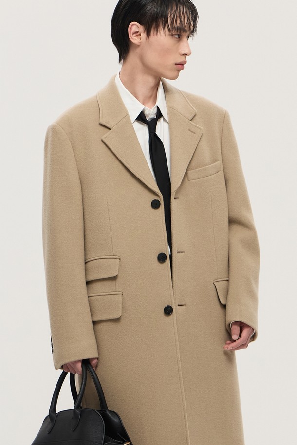 베이지 오버핏 캐시미어 3버튼 테일러드 코트 (TNCO4F101I2)