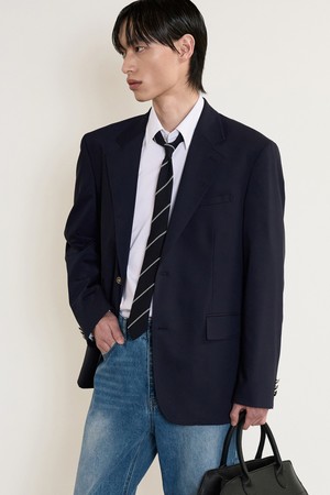 Wool Blend Stripe Slim Tie (Navy) TNNE5E101N2