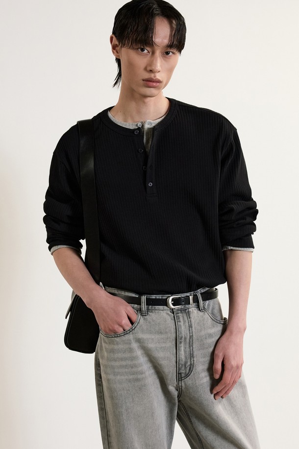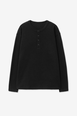 Ribbed Henley Neck T-Shirt (Black) TNTS5E106BK