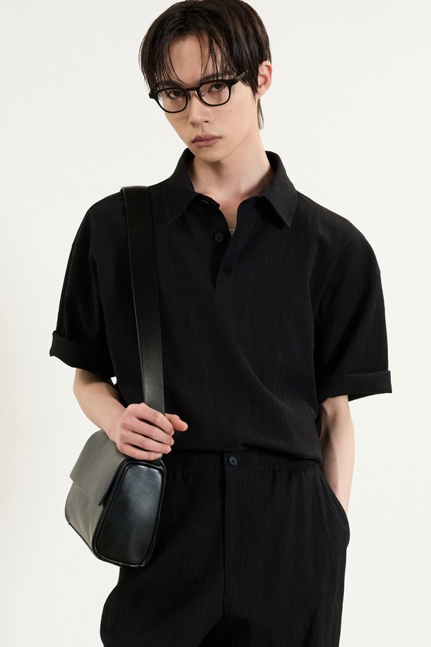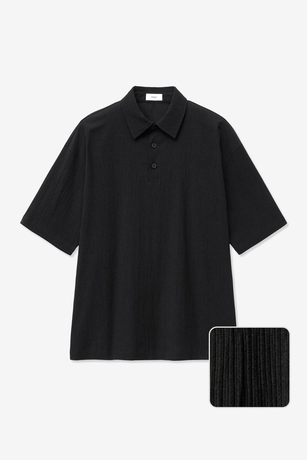 Kinoshita Seersucker Collared T-Shirt (Black) TNTS5E205BK