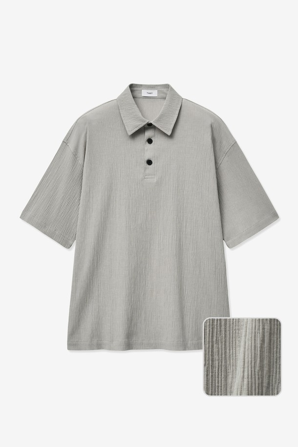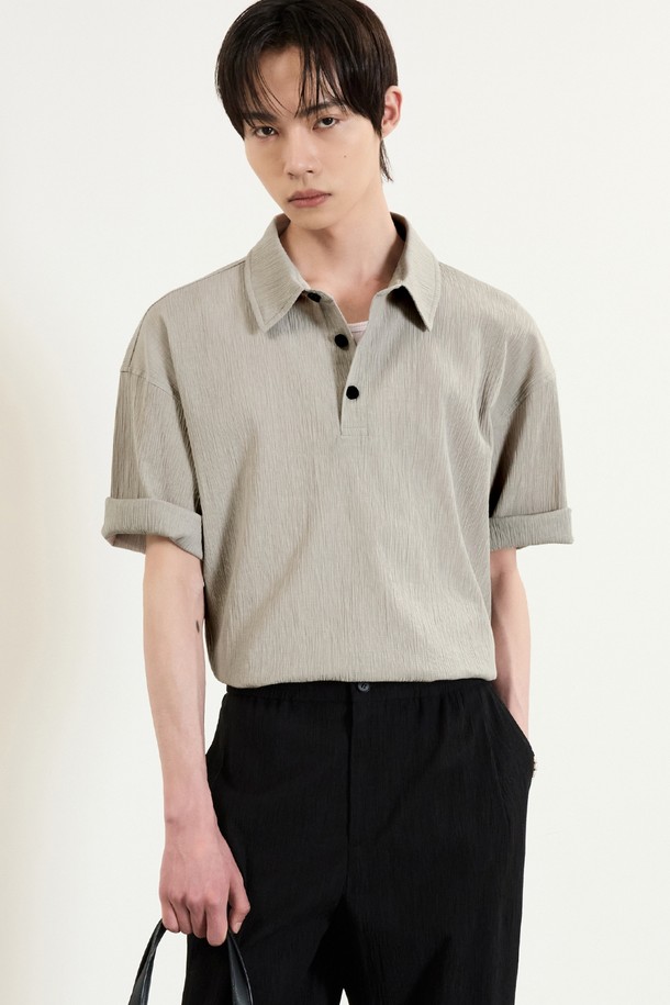 Kinoshita Seersucker Collared T-Shirt (Beige) TNTS5E205I2
