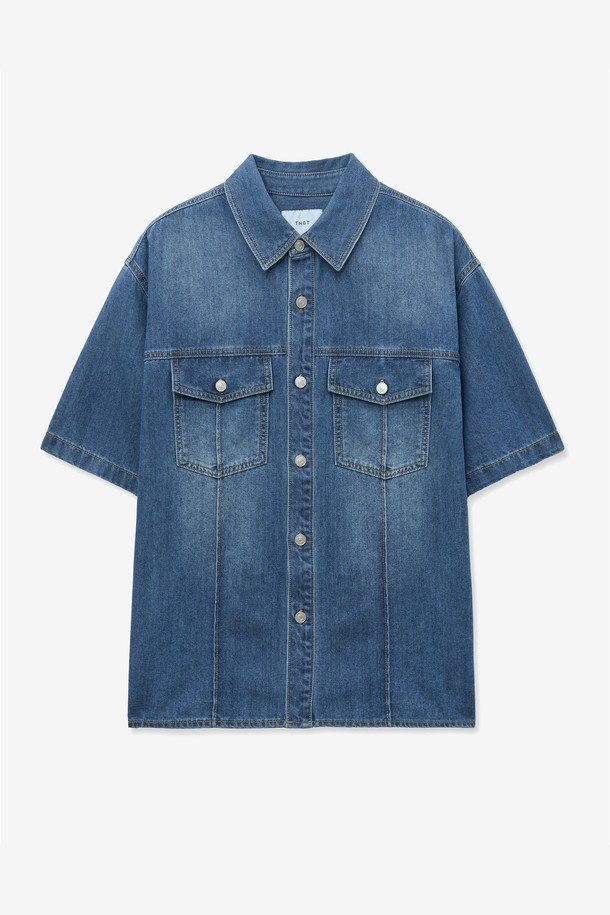 워시드블루 오버핏 데님 반팔 셔츠 (TNSH5E201B3)