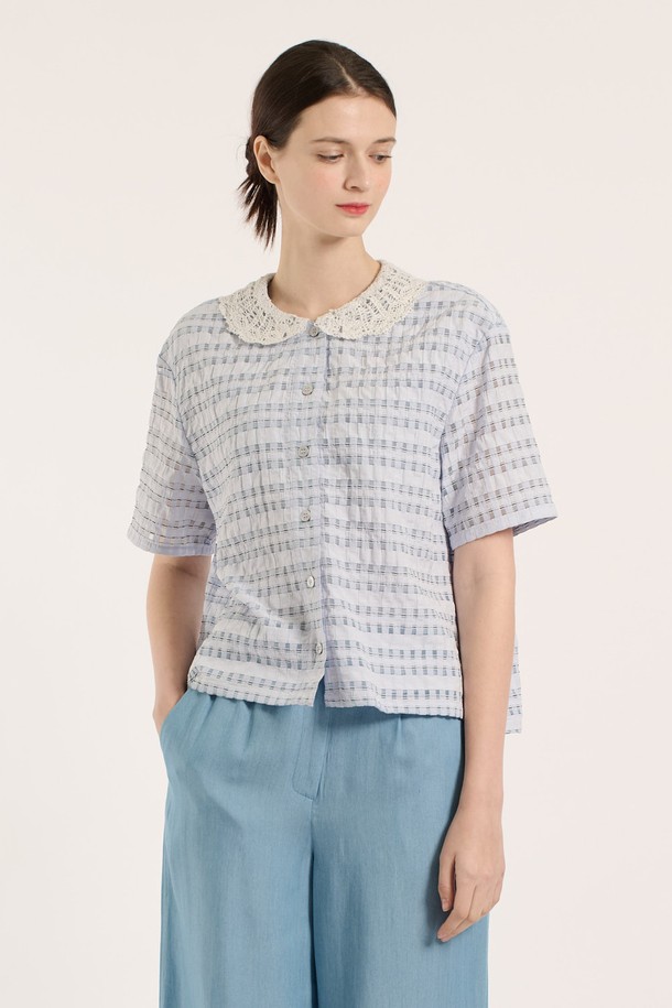 [25SM] 니트 카라 블라우스 - LIGHT BLUE B5B4B42251