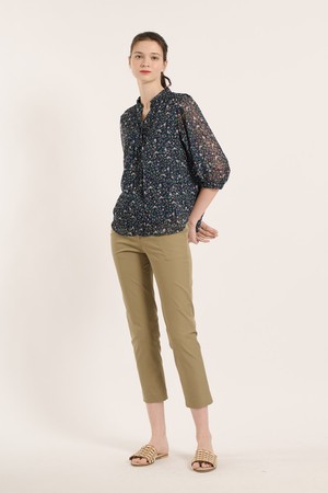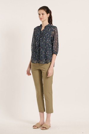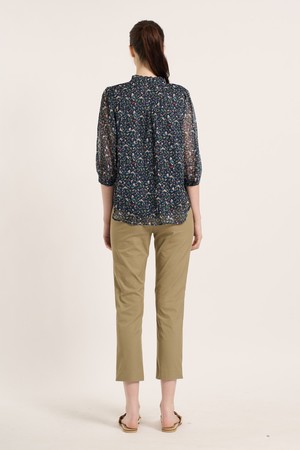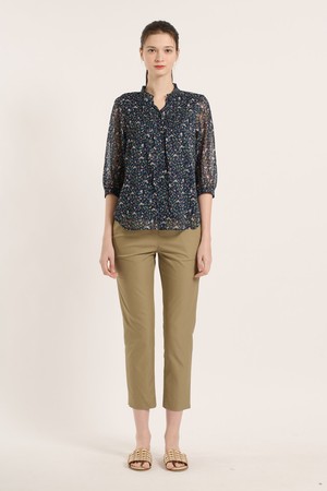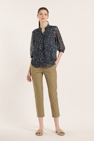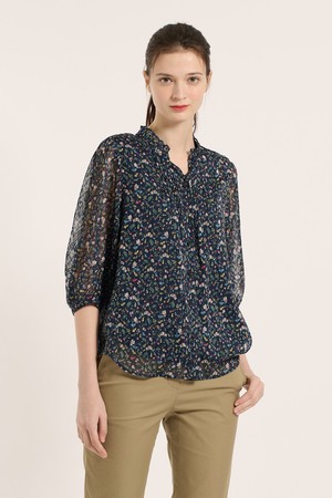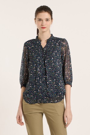 [25SM] 플로럴 프릴 블라우스 - NAVY B5B4B42655