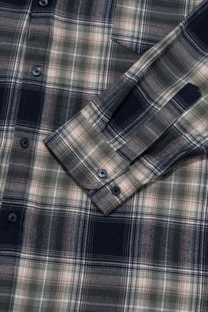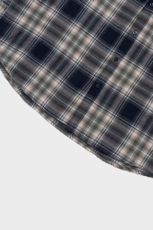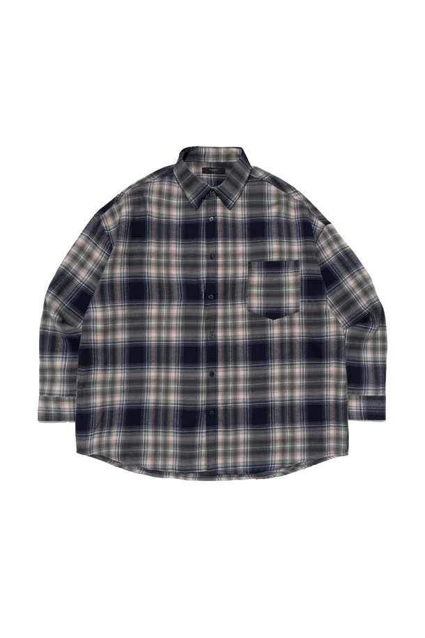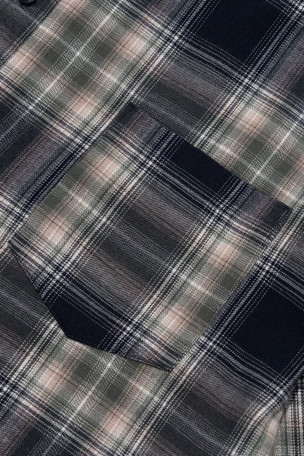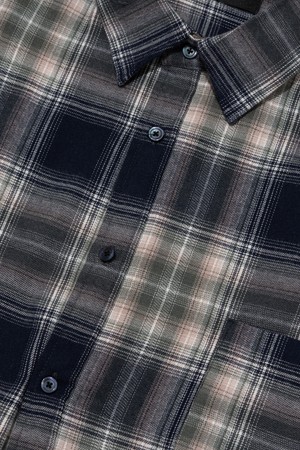 피치 코튼 루즈핏 체크셔츠 (카키)