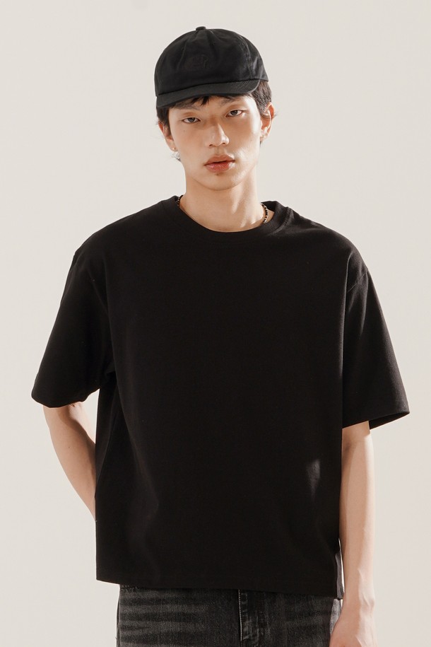 보이 크롭 반팔티셔츠 블랙 KJST2619