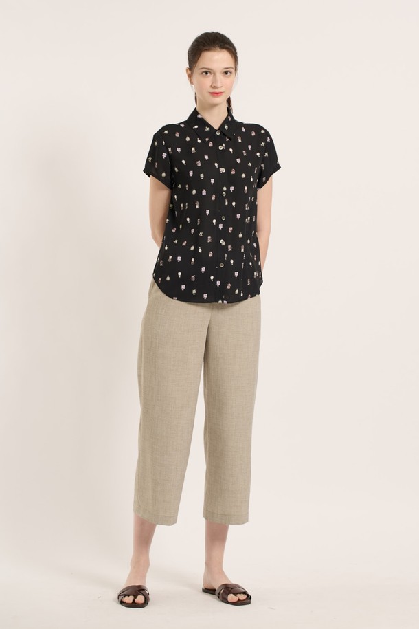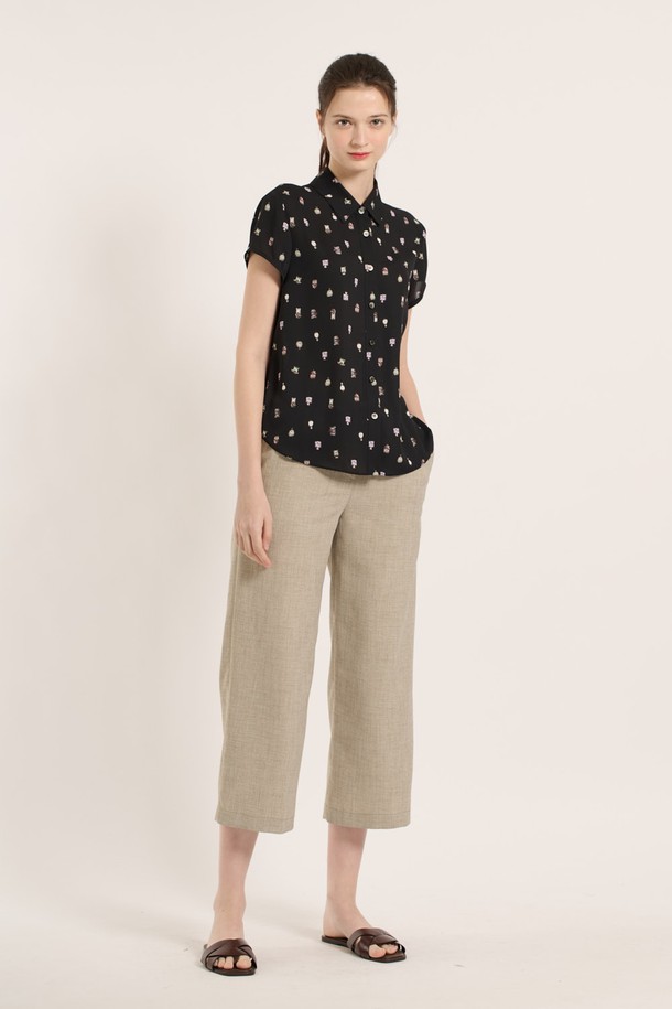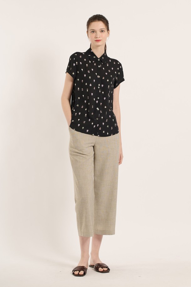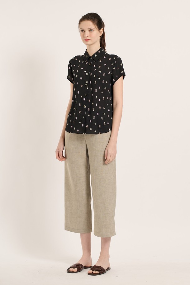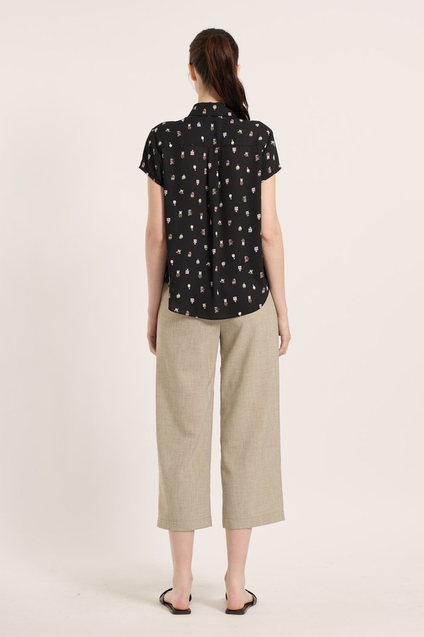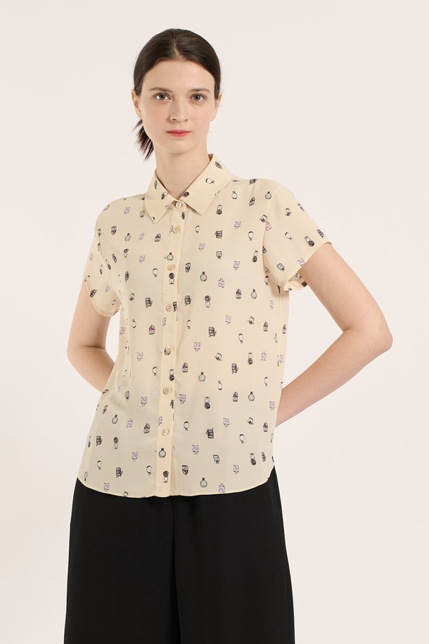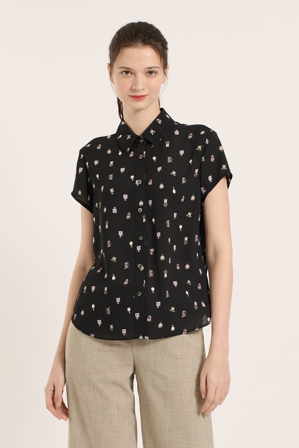 [25SM] 퍼퓸 프린트 반팔 블라우스 - BLACK B5B4B48899