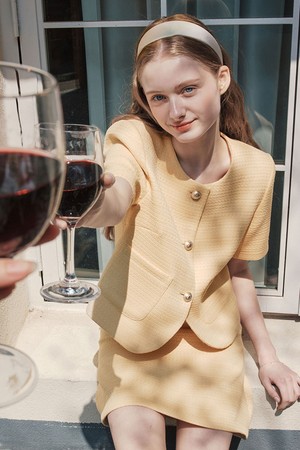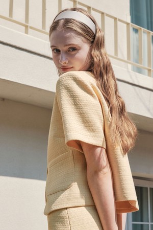 크리미 트위드 자켓 / 버터 옐로우 (반팔ver)
