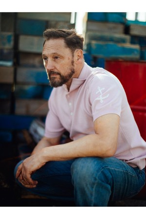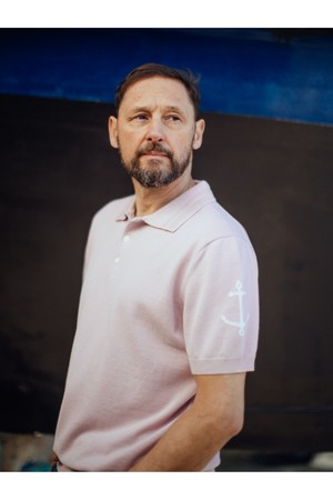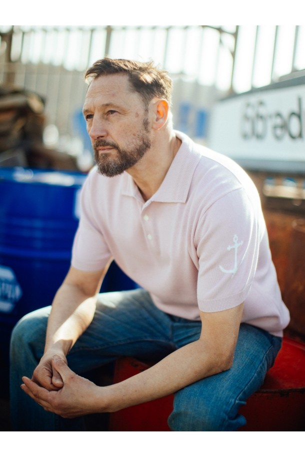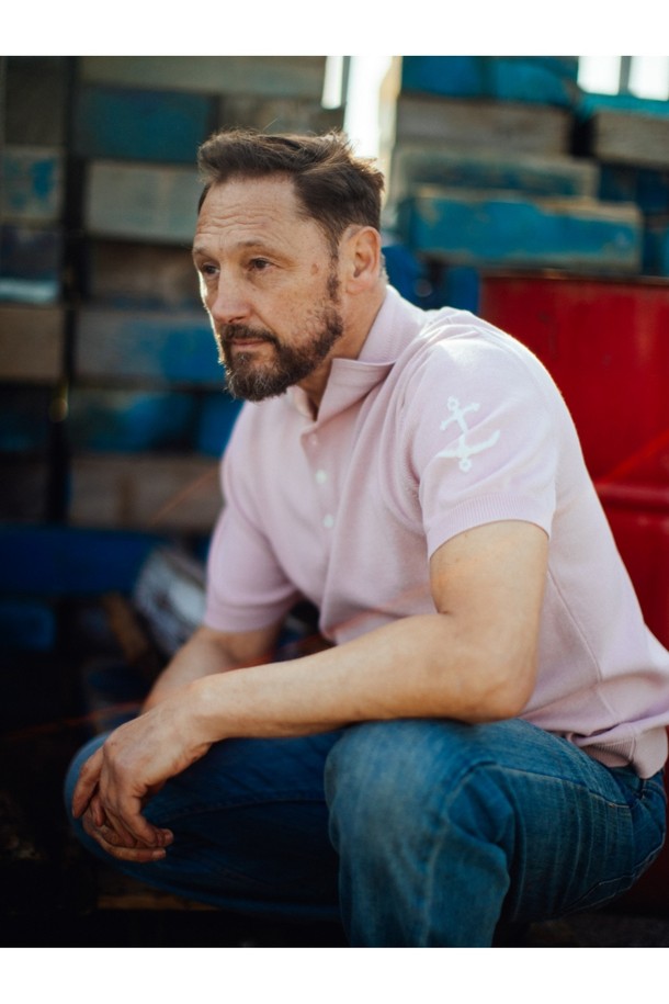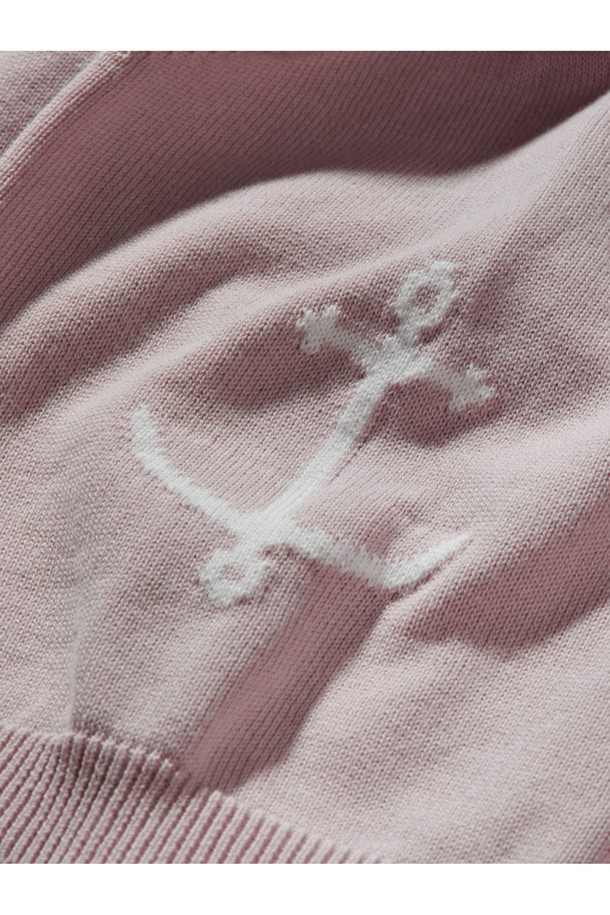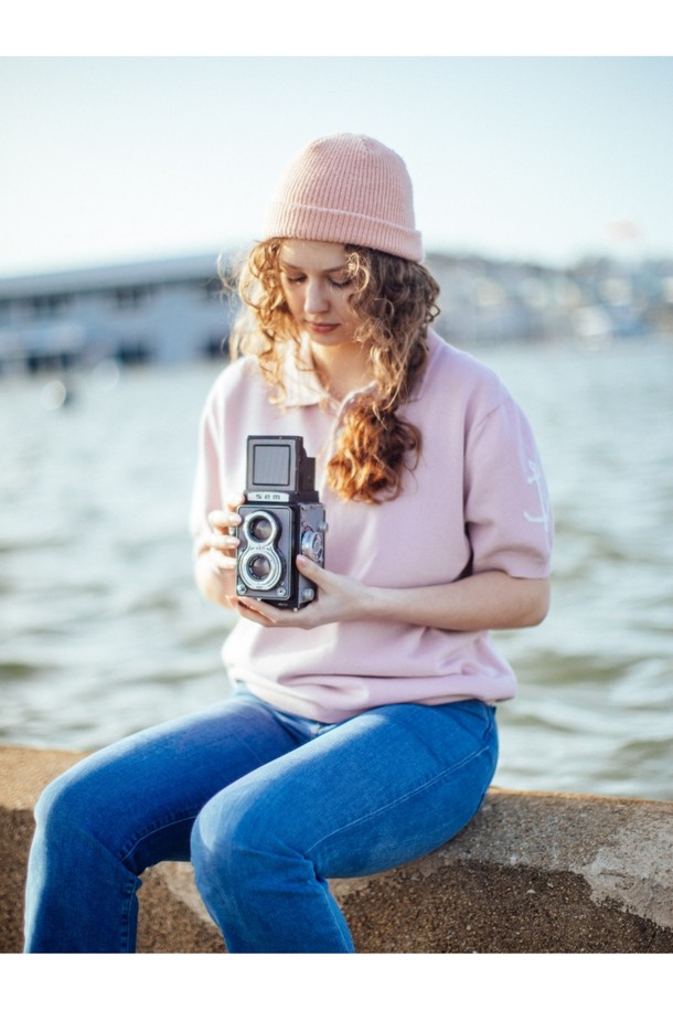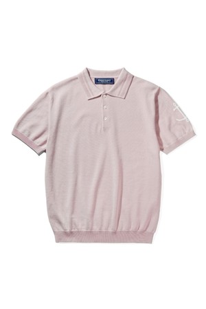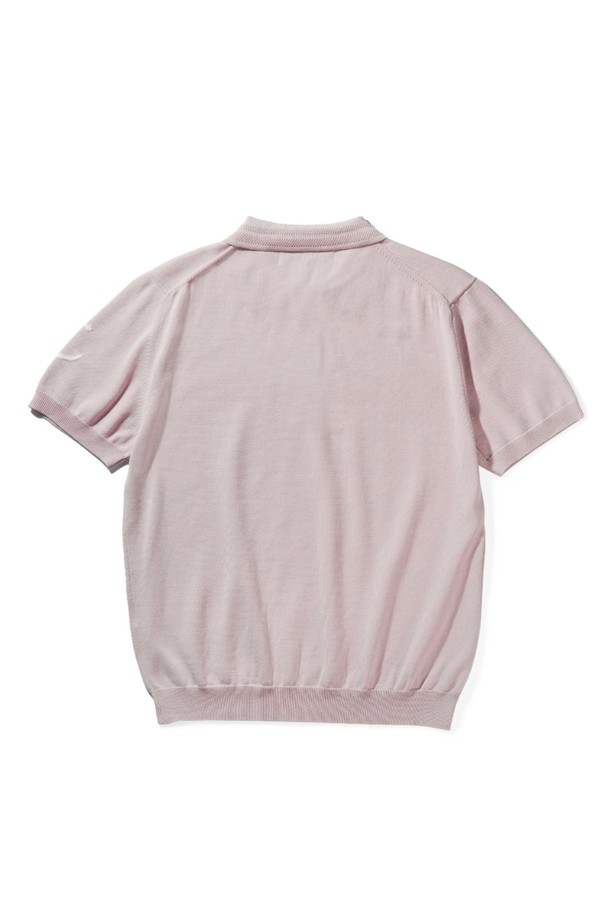 코튼 반팔 카라 니트 - 핑크