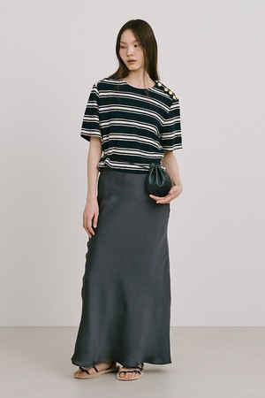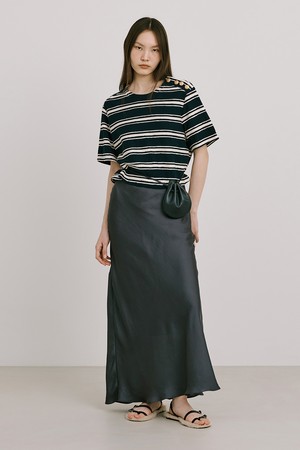 Stripe Jacquard Knit Short Sleeve T_Navy
